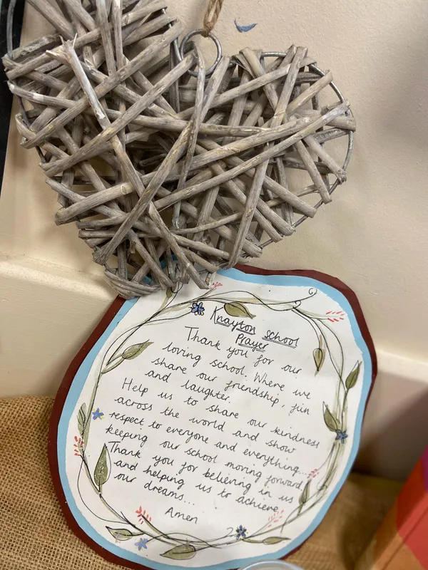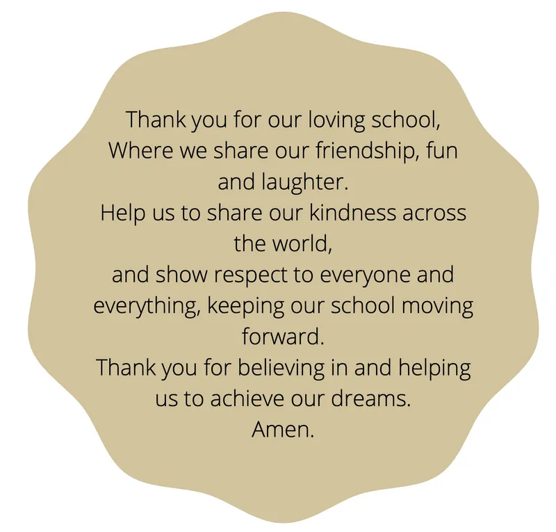 Our school prayer was written by our children and is visible in class prayer spaces and included in collective worships.