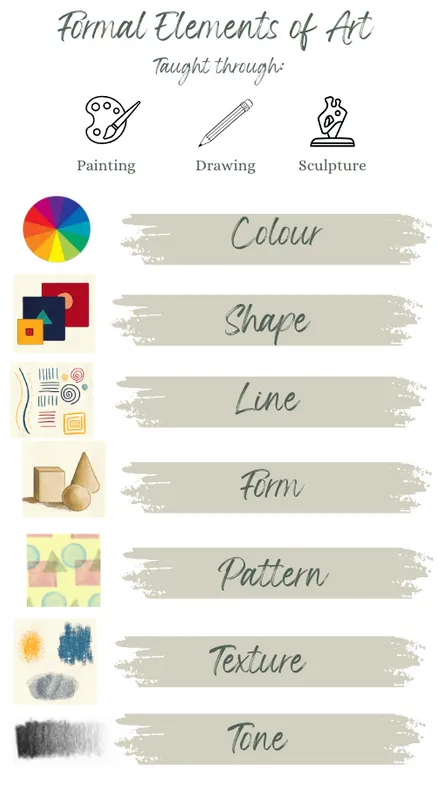 - We teach these formal elements of art across drawing, painting and sculpture.